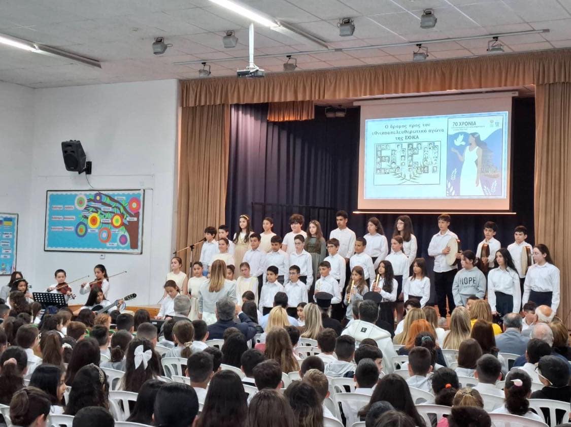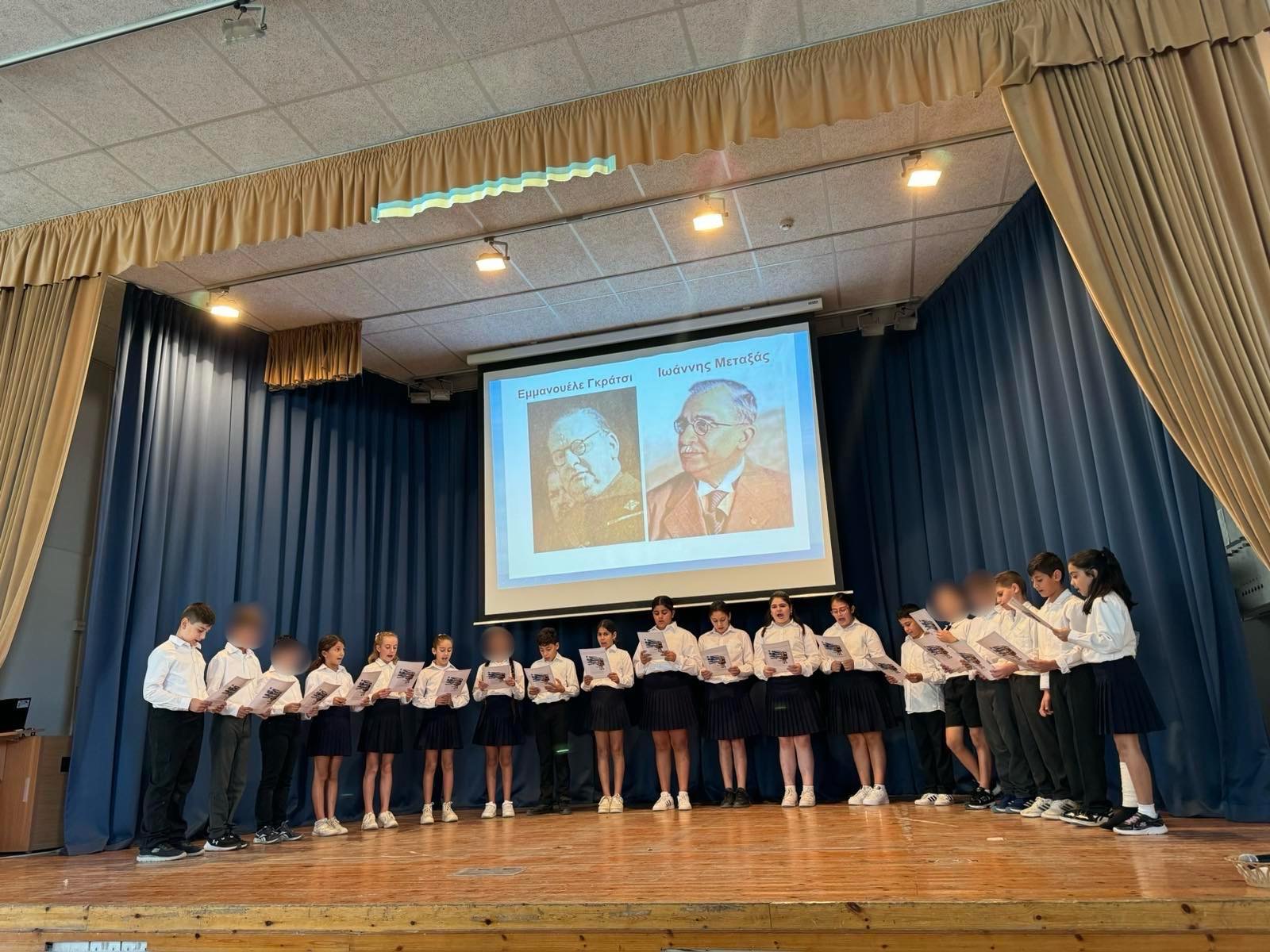 Τη Δευτέρα 27/10/2025 το σχολείο μας τίμησε την επέτειο της 28ης Οκτωβρίου με εκδήλωση στην αίθουσα πολλαπλής χρήσης. Στην εκδήλωση έλαβαν μέρος τα παιδιά της Στ'1 και Γ'1 καθώς και η χορωδία και ορχήστρα του σχολείου μας. Προηγήθηκε παρέλαση και έπαρση της σημαίας στο προαύλιο του σχολείου. Την εκδήλωση τίμησαν με την παρουσία τους οι γονείς των μαθητών που λάμβαναν μέρος, εκπρόσωπος της Σχολικής Εφορίας Δυτικής Λεμεσού και μέλη του Συνδέσμου Γονέων και Κηδεμόνων.